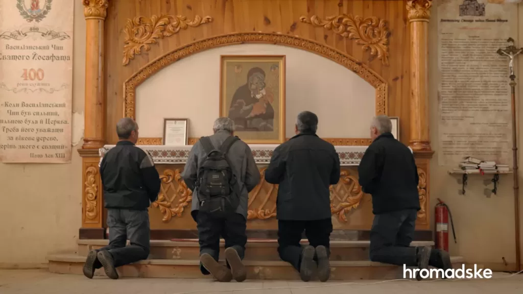 За 8 кілометрів від Роздолівки — село Званівка. Тут також щоденні обстріли. Чоловіки на велосипедах їдуть саме туди. Дорога займає годину. Вони хочуть потрапити на ранкову недільну службу у греко-католицькому монастирі отців Василіян. Лінія фронту наближається впритул до Званівки, канонади частішають, тож це богослужіння, ймовірно, буде останнім, аж доки не виженуть росіян.
